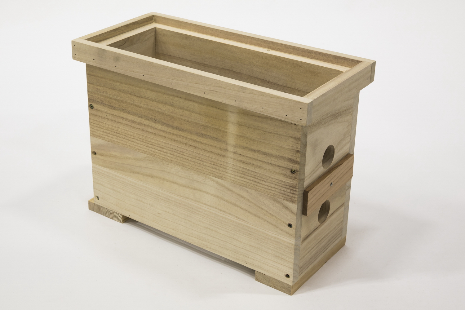 Für 4 Rähmchen Normalmaß, mit Lüftungsgitter unten und rückseitig, Abstands- und Auflagering, 5 Zuchtlatten und Deckel, Lieferung ohne Rähmchen