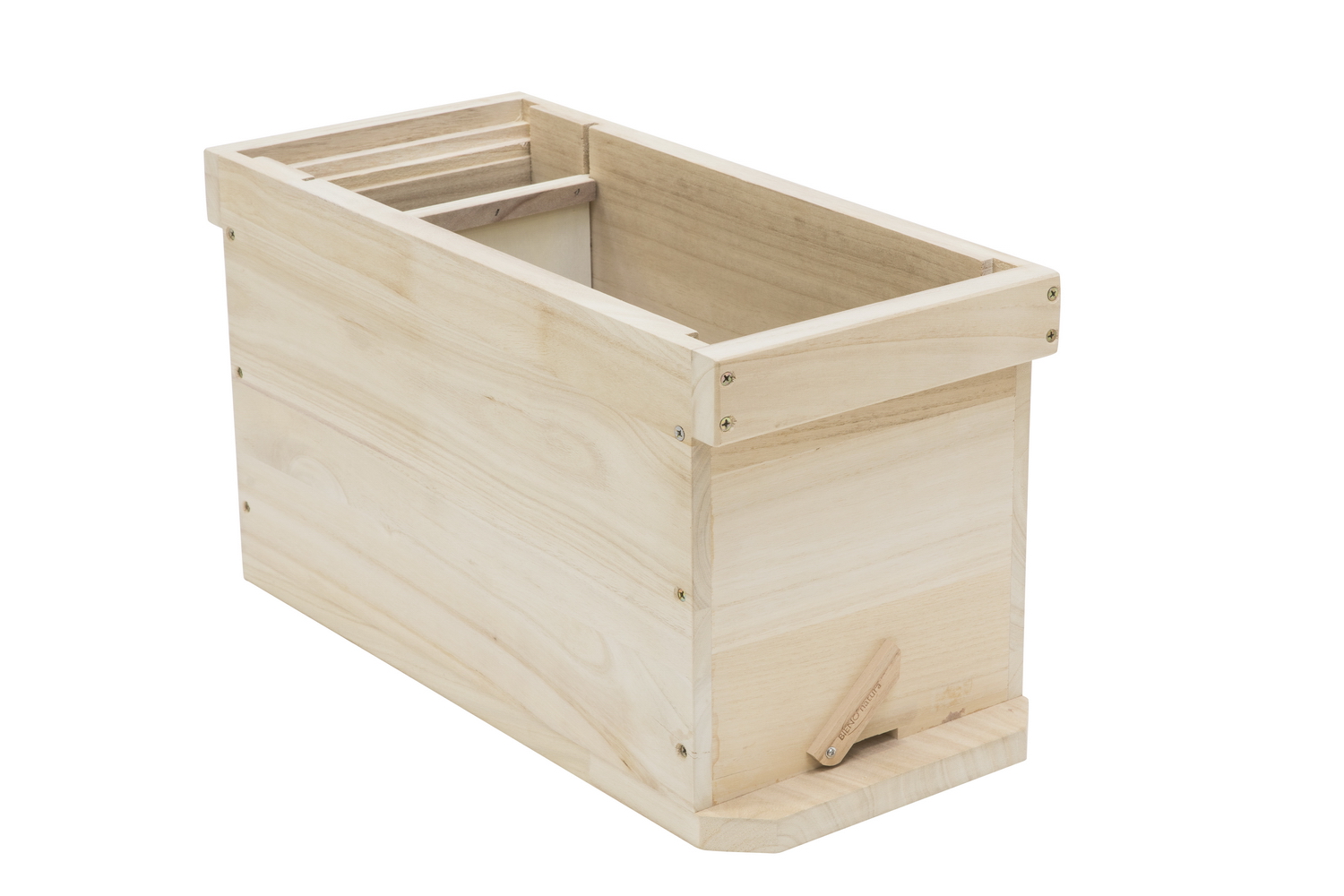 für 5 Rähmchen Normalmaß oder Zander. Mit verschließbarem Flugloch und Spundloch im Deckel. Bei Normalmaß verbleibt Platz als Futterkammer, gefertigt aus Vollholz mit Hartfaserdeckel