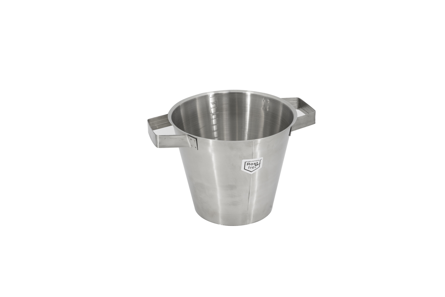 konisch, zum Wachs klären, Einschmelzen oder Blöcke gießen. Hergestellt aus Edelstahl mit innenseitiger Skalierung und eckigen Griffen. Passend für den Abdeckring Art. 13820 und die Wachs-Schmelzkessel Art. 13810 und 13824 Höhe ca. 26 cm, Ø oben 32 cm Inhalt 12 l, Gewicht 1,5 kg