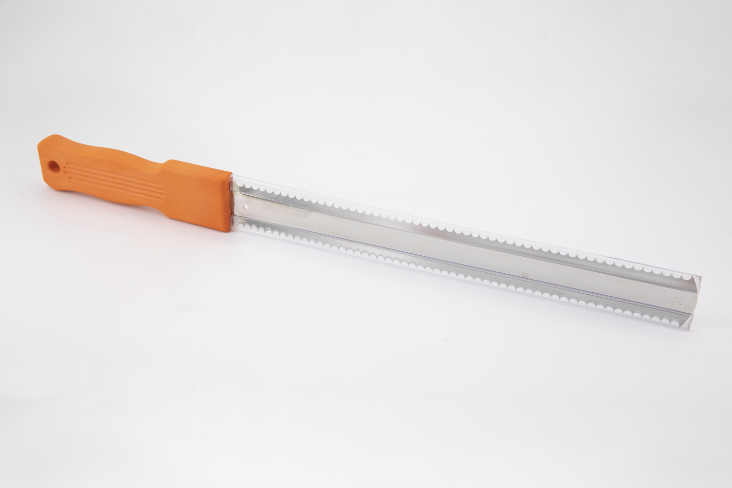 nach australischem Vorbild für Rechtshänder hergestellt, extra gehärtet und ausgestattet mit einem beidseitigen, sehr scharfem Spezial-Wellenschliff. Schneide von 30,5 cm Länge, oranger Kunststoffgriff