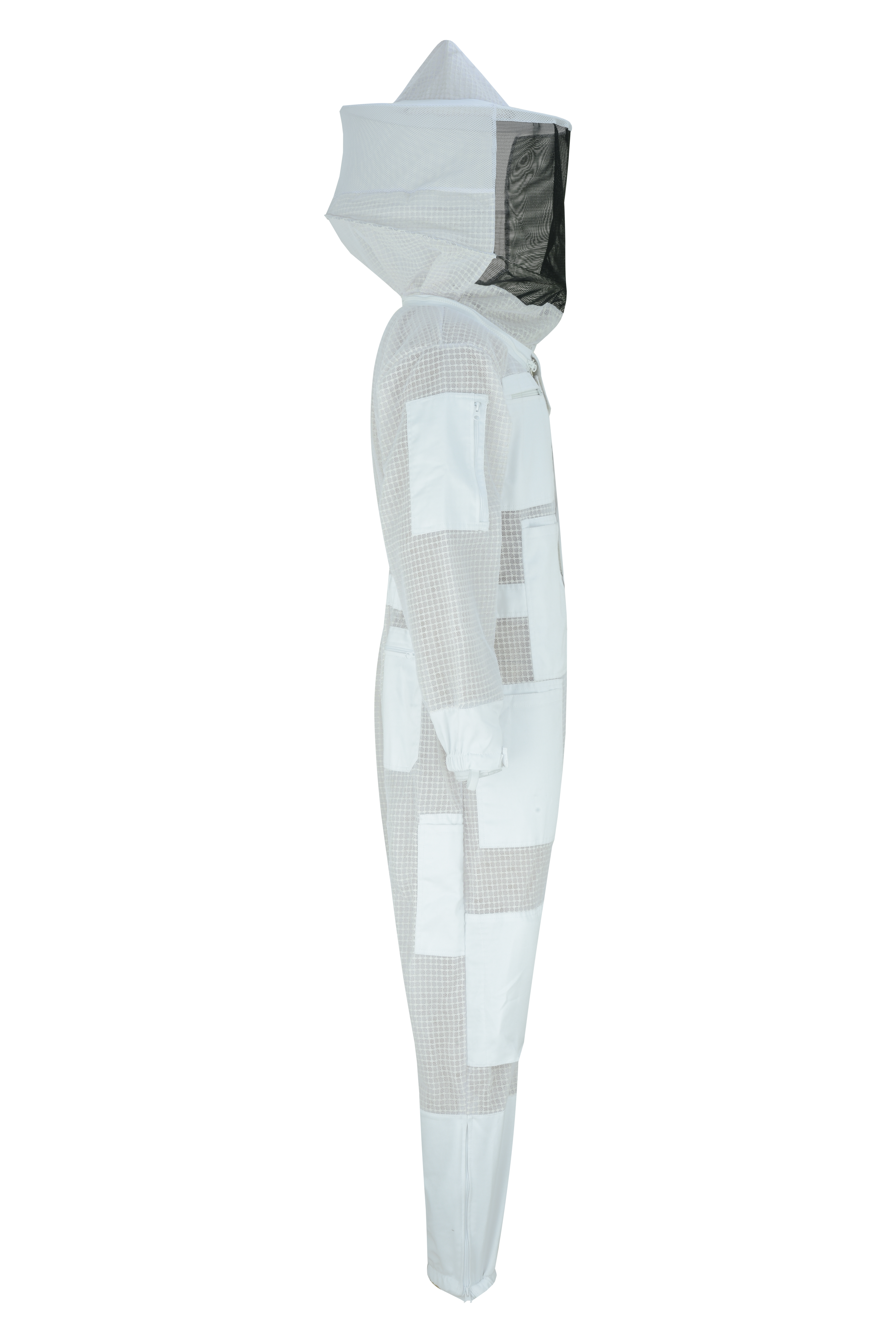 Hochwertiger Bienenanzug in strahlendem Weiß mit Rundschleier - Stil und Sicherheit in Einem
