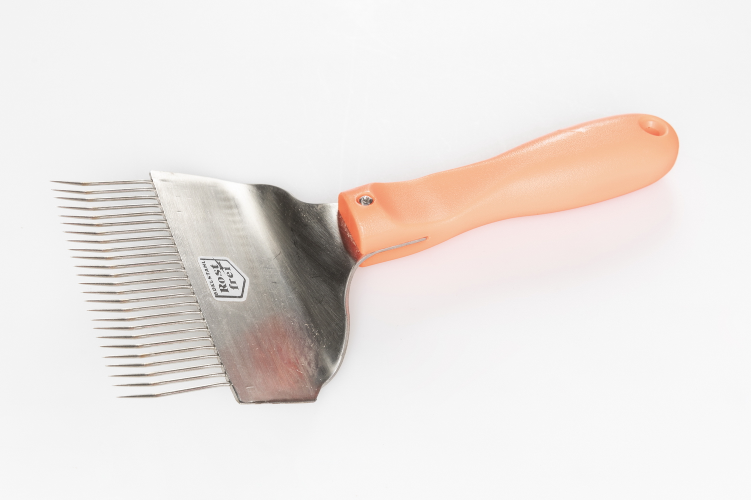 extra breit, mit gebogenen Edelstahl-Nadeln, neonfarbigem Kunststoffgriff und seitlichem Messer
