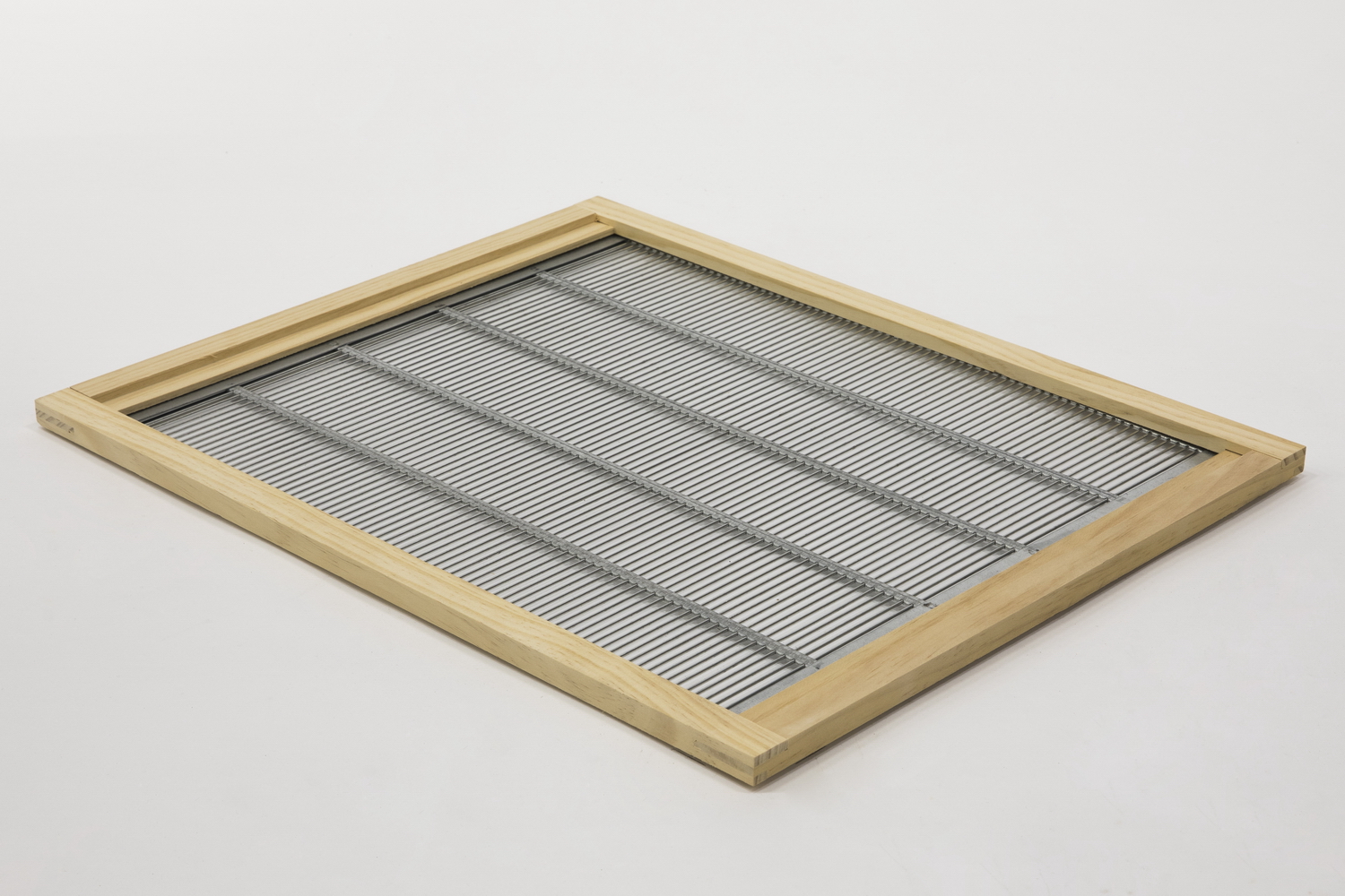 grille de délimitation en métal galvanisé 394 x 456 mm, rivetée dans le cadre en bois et protégée contre le glissement par deux baguettes, dimensions extérieures env. 520 x 420 mm, hauteur 12 mm