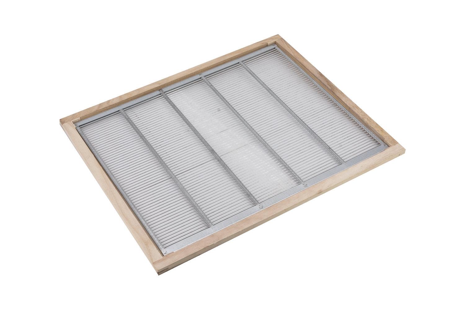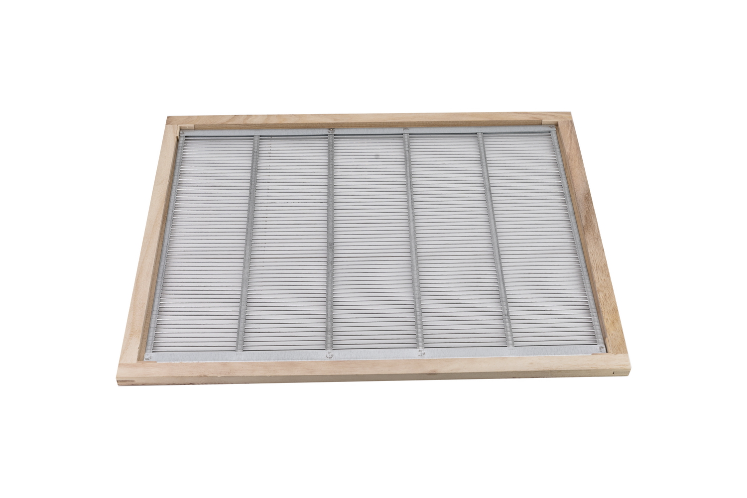 barrière métallique galvanisée 478 x 378 mm, insérée dans un cadre en bois galvanisé, dimensions extérieures env. 520 x 420 mm, hauteur 15 mm