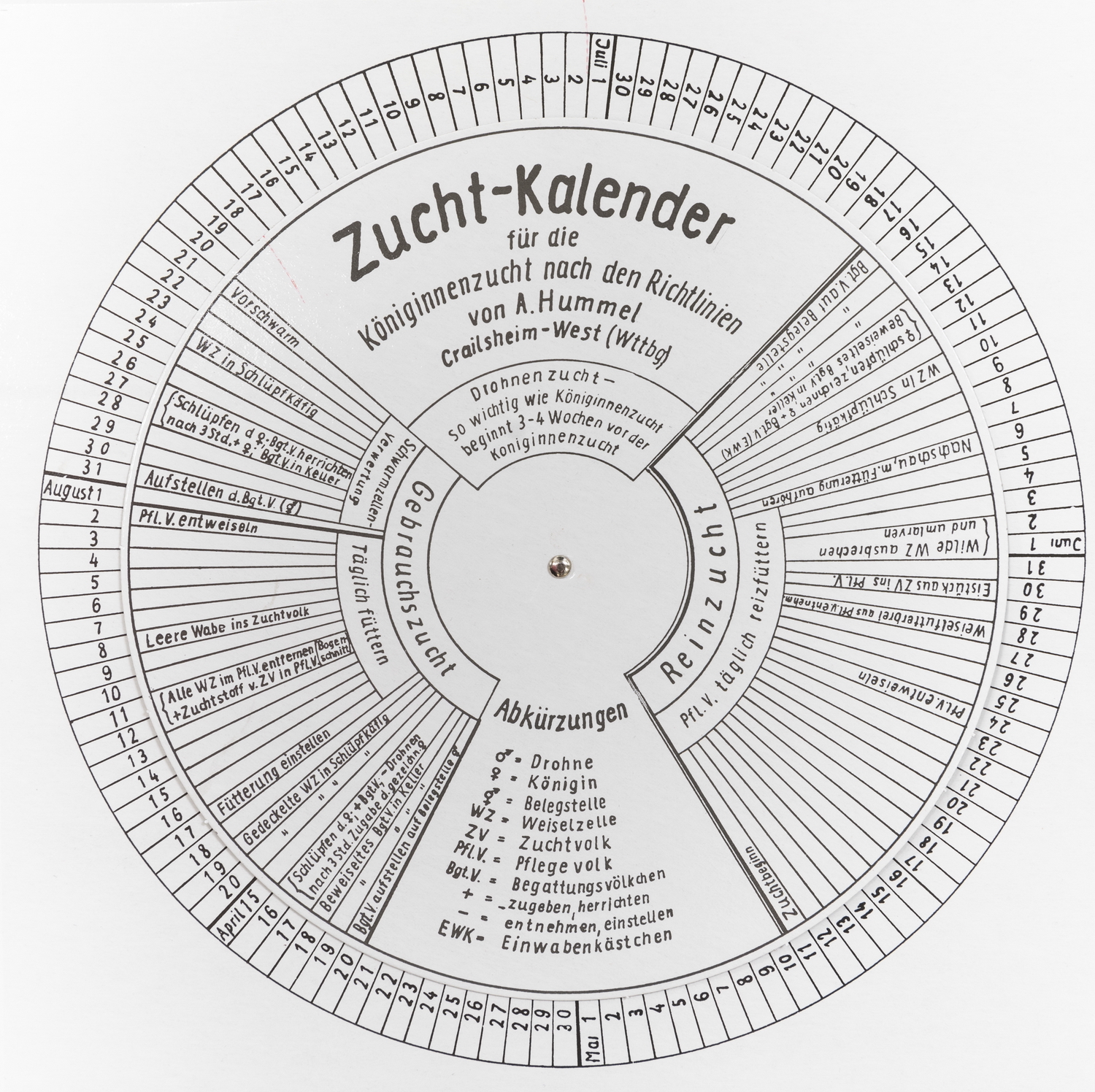 Informations sur le produit "Calendrier d'élevage avec plaque tournante des dates"