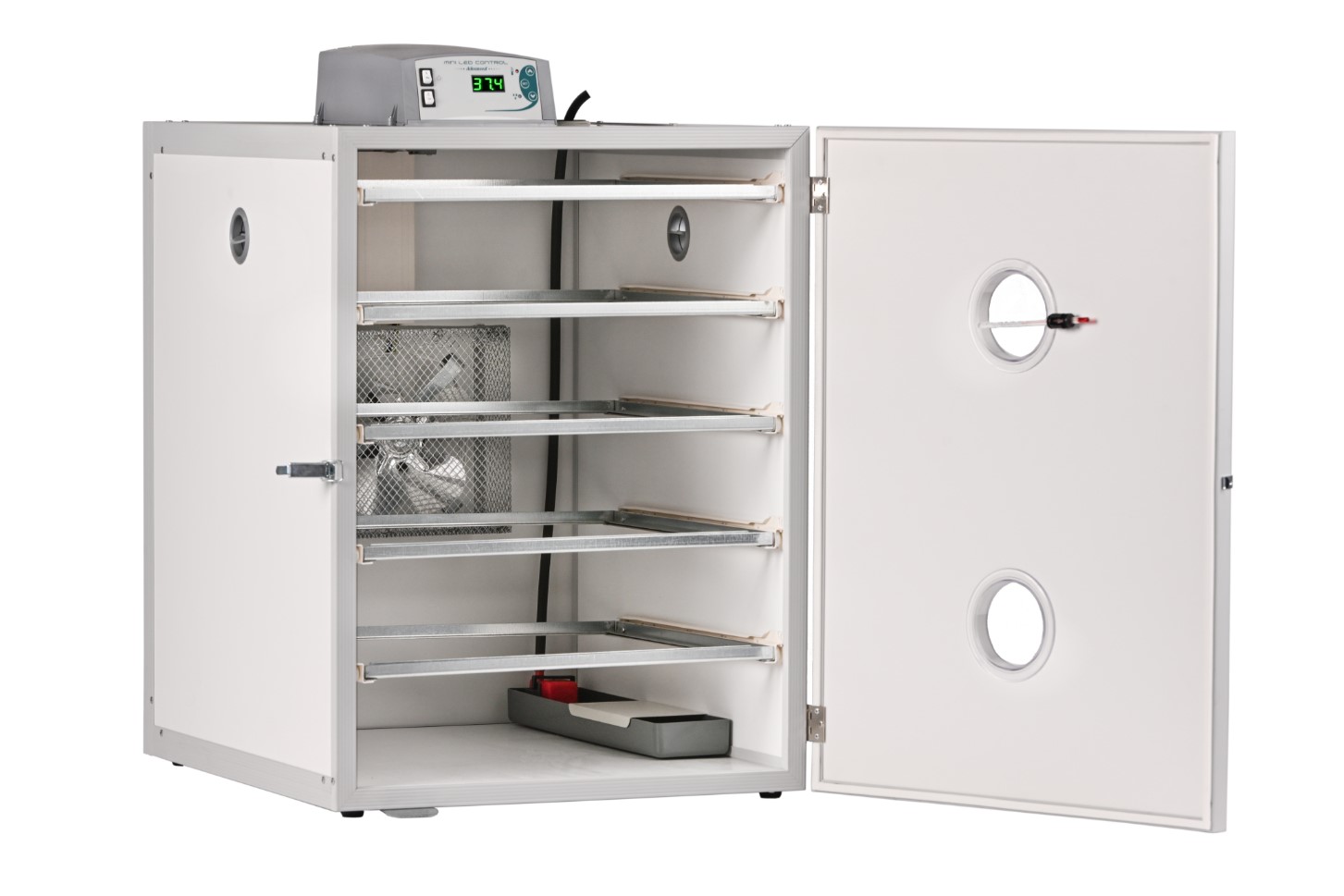 Durch die präzise Steuerung von Temperatur und Luftfeuchtigkeit eignen sich die Inkubatoren für den dauerhaften Einsatz in Zuchtbetrieben und professionellen Imkereien.