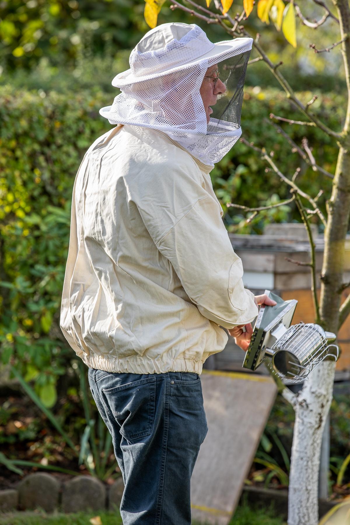 aus Baumwoll-Köperstoff mit vier Taschen und Gummibündchen. Voll waschbar. Hoher Tragekomfort, angenehm und sicher durch Distanzring sowie einer nach hinten wegklappbaren oder abnehmbaren Visierhaube mit Kopfaussparung und zusätzlicher Belüftung