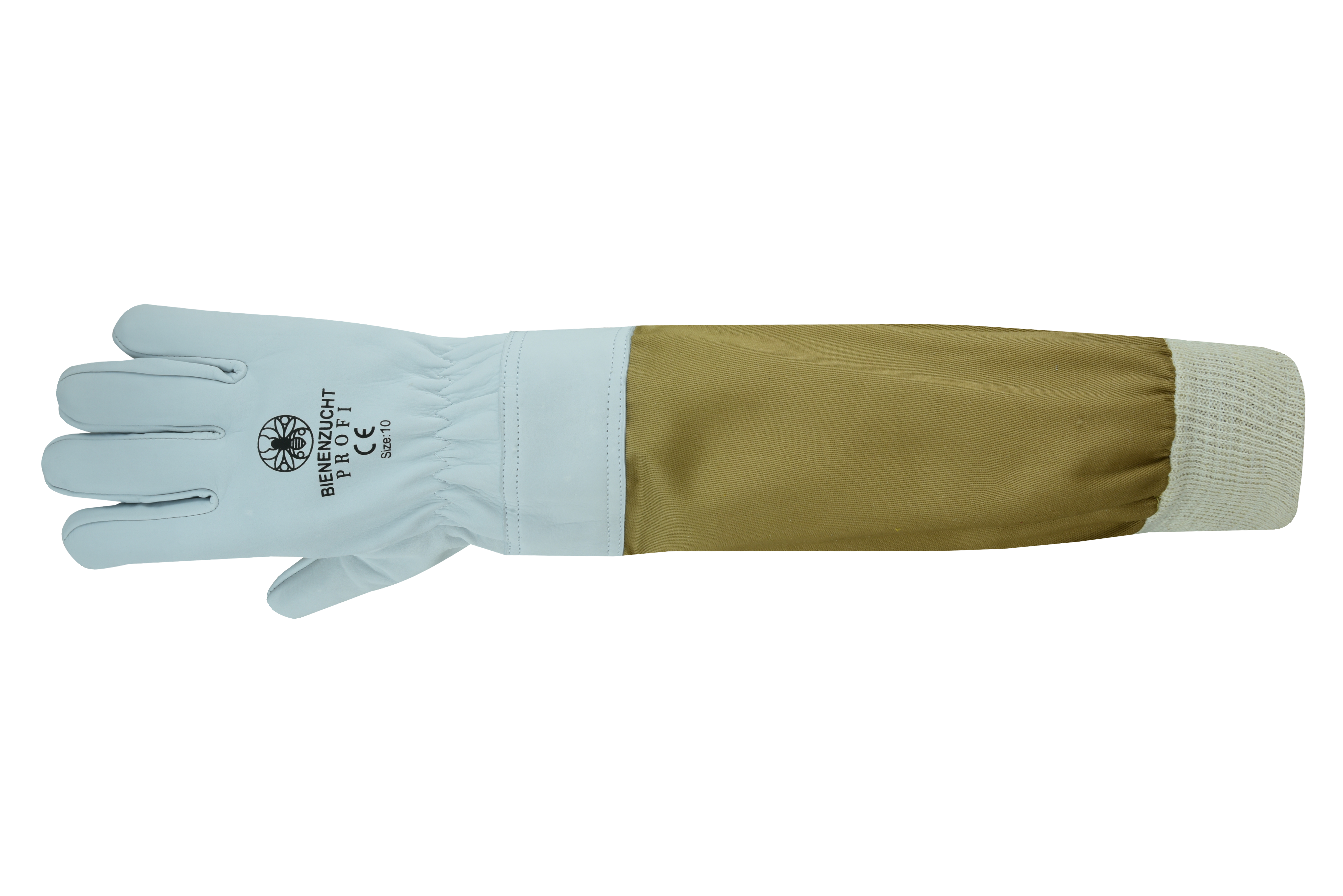 Produktinformationen "Imkerhandschuhe Leder Weiß, Stulpen Khaki"