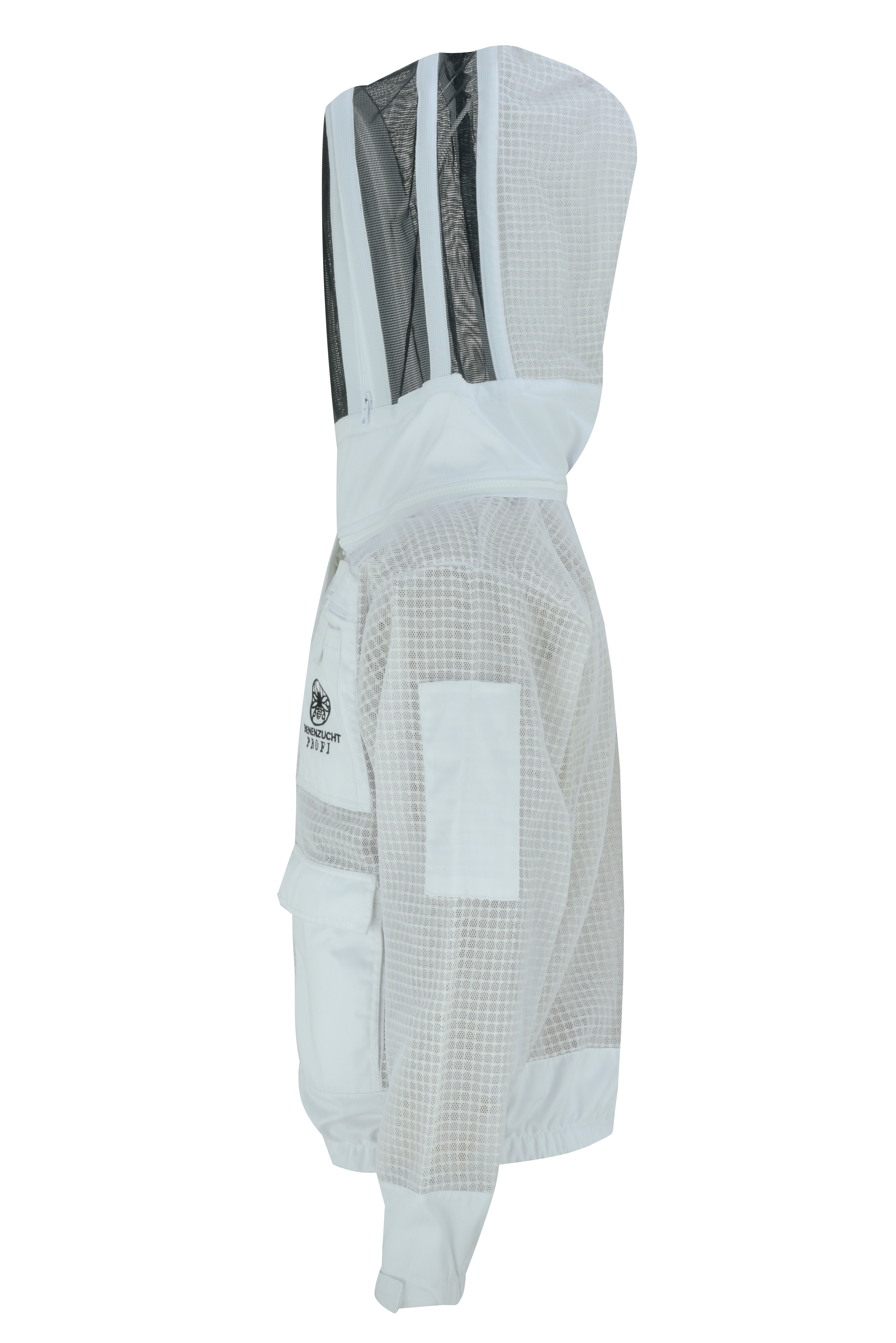 Produktinformationen "Imkerschutzjacke Farbe Weiß luftdurchlässig + Fechtschleier selbsttragende Haube"