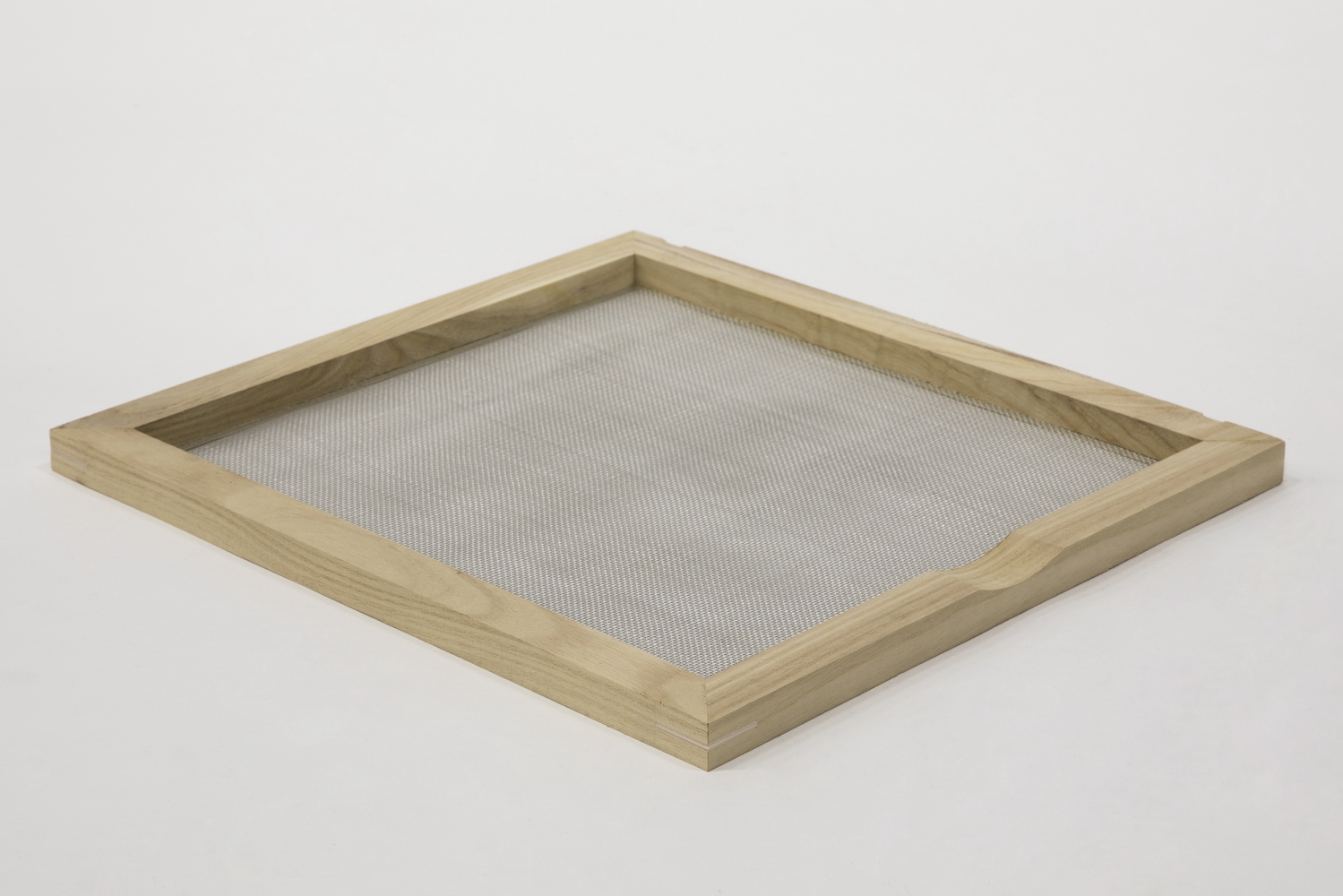 bestehend aus großflächigem Pollenkamm aus Kunststoffgewebe mit Ø 0,5 mm Löcher und Pollen-Auffangrahmen. Beide Rahmen werden durch die hintere Arbeitsklappe eingeschoben, ohne den Kasten zu öffnen